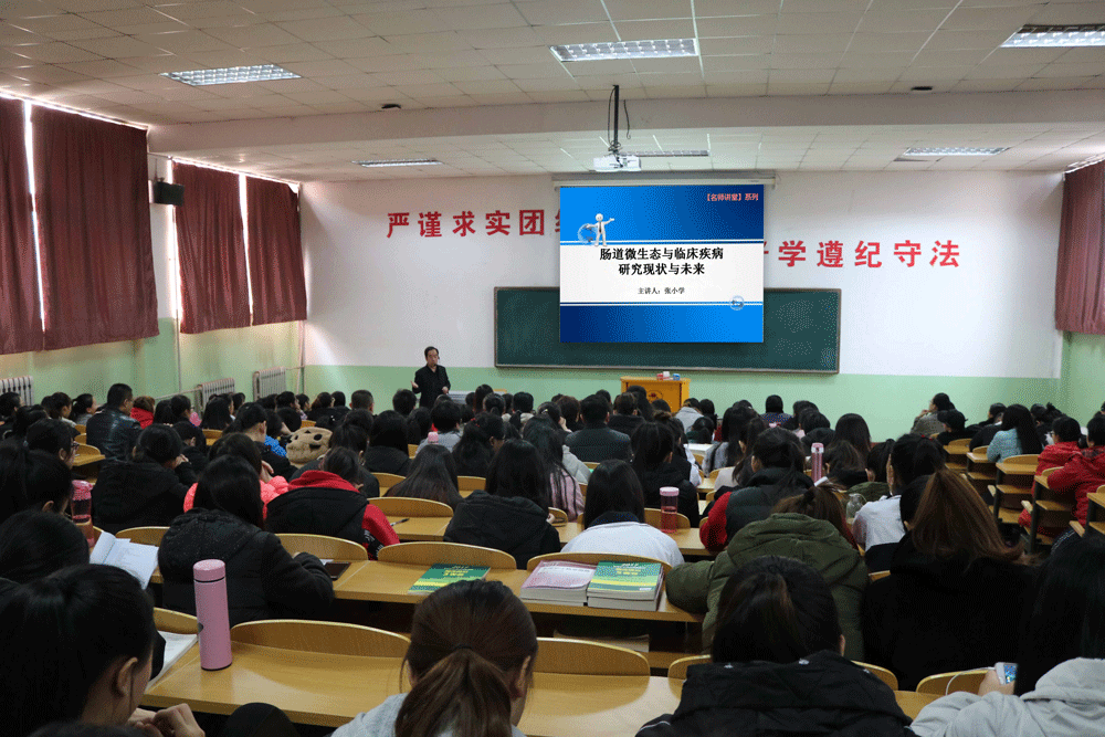 讲座期间,张小学医师用轻松幽默的话语营造了一个愉悦的氛围。他先是从不同的角度和同学们谈了对肠道微生态的认识,着重强调了肠道微生态的背景、现状及重要性,紧接着介绍了肠道微生态与各种疾病的相关性。然后根据自己十几年来的工作经验,把肠道微生态在医学中的应用给我们作了生动、详尽的介绍,提出了“肠道微生态是医学革命的中心和未来”的见解,鼓励我们深入研究,并且为我们指出了许多比较有发展空间的研究方向。最后,对同学们寄予了殷切的期望。