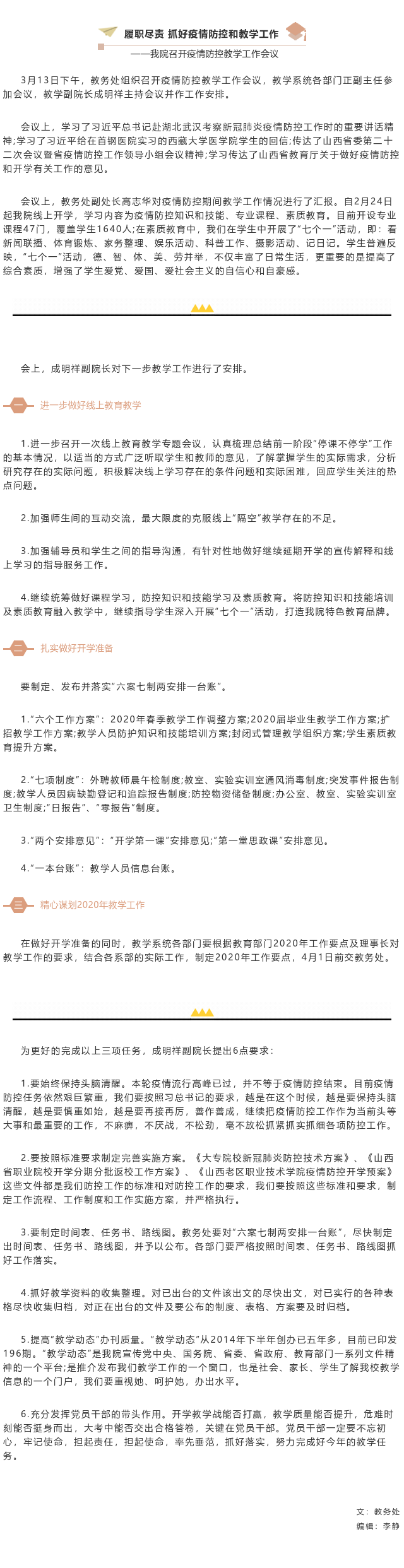 履职尽责 抓好疫情防控和教学工作