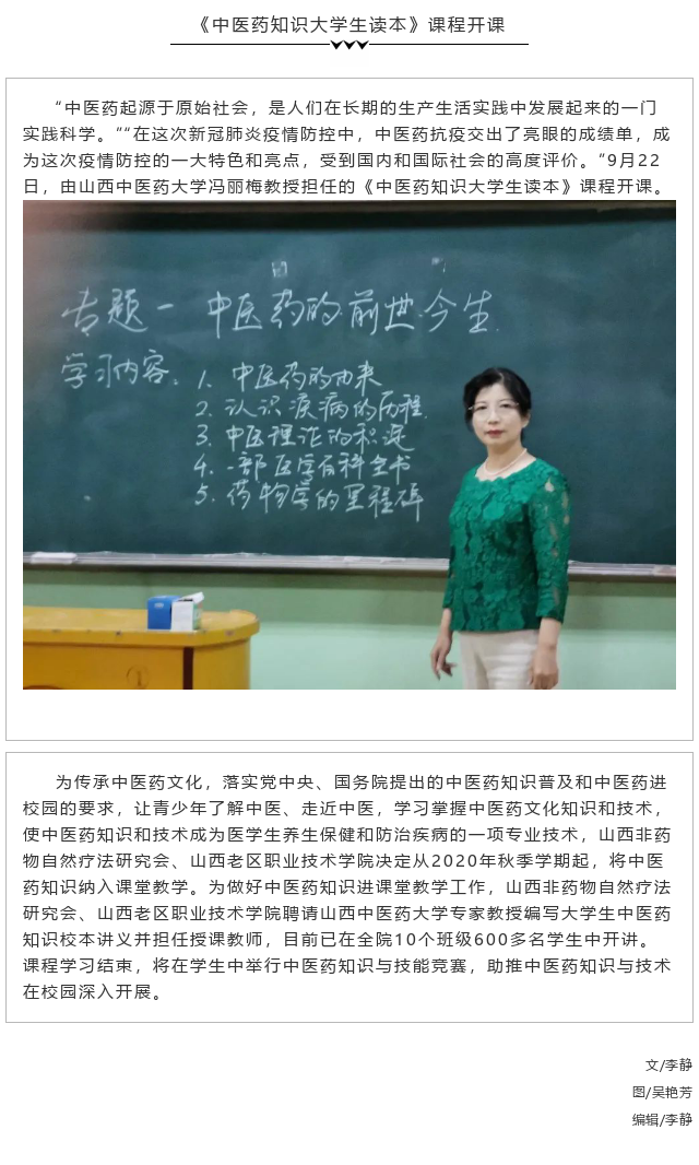 《中医药知识大学生读本》课程开课