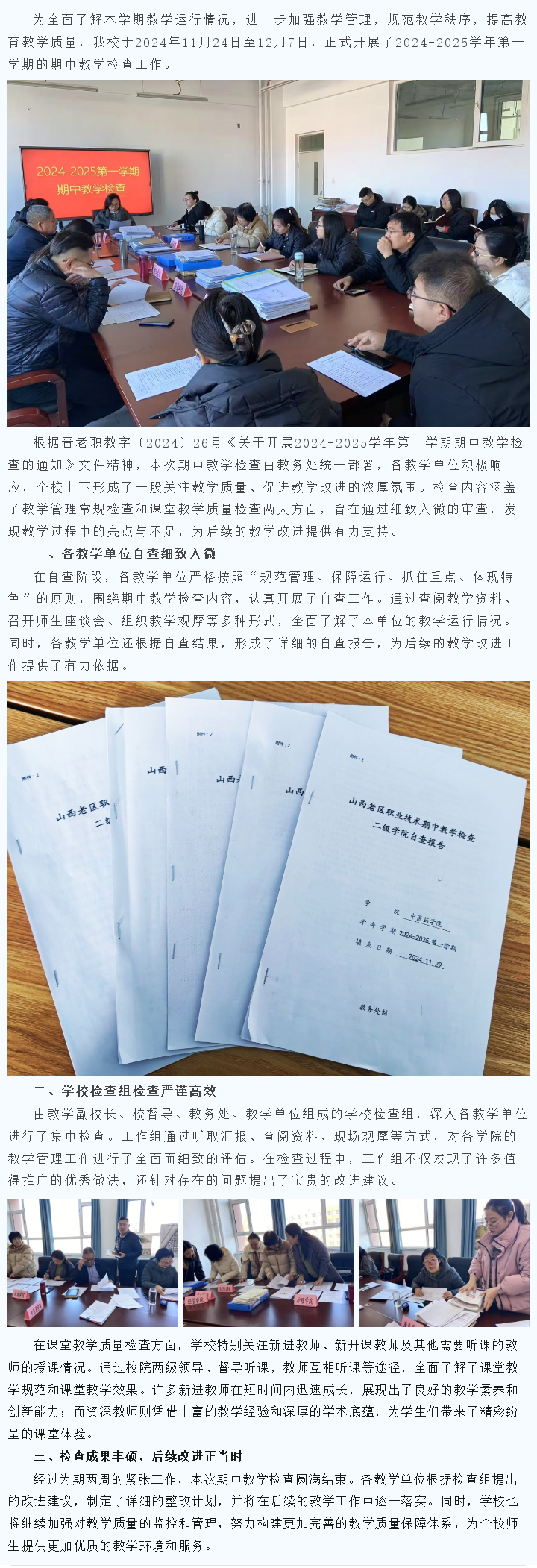 教学质量再提升 期中教学检查全面展开——2024-2025第一学期期中教学检查工作纪实