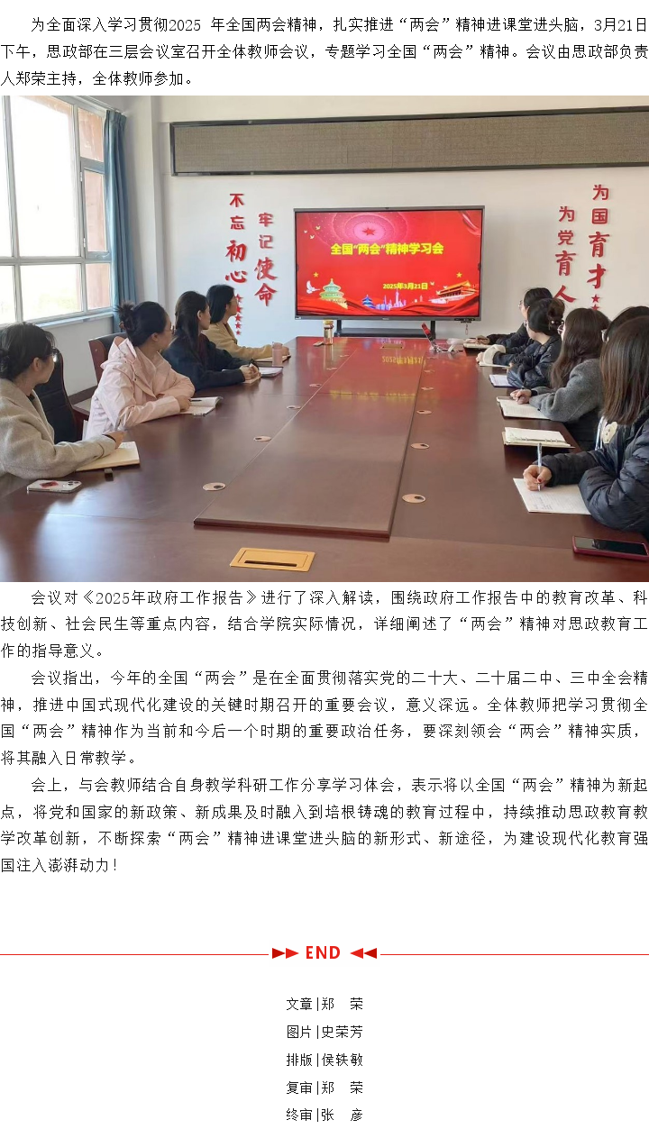 思政部召开2025年全国“两会”精神学习会