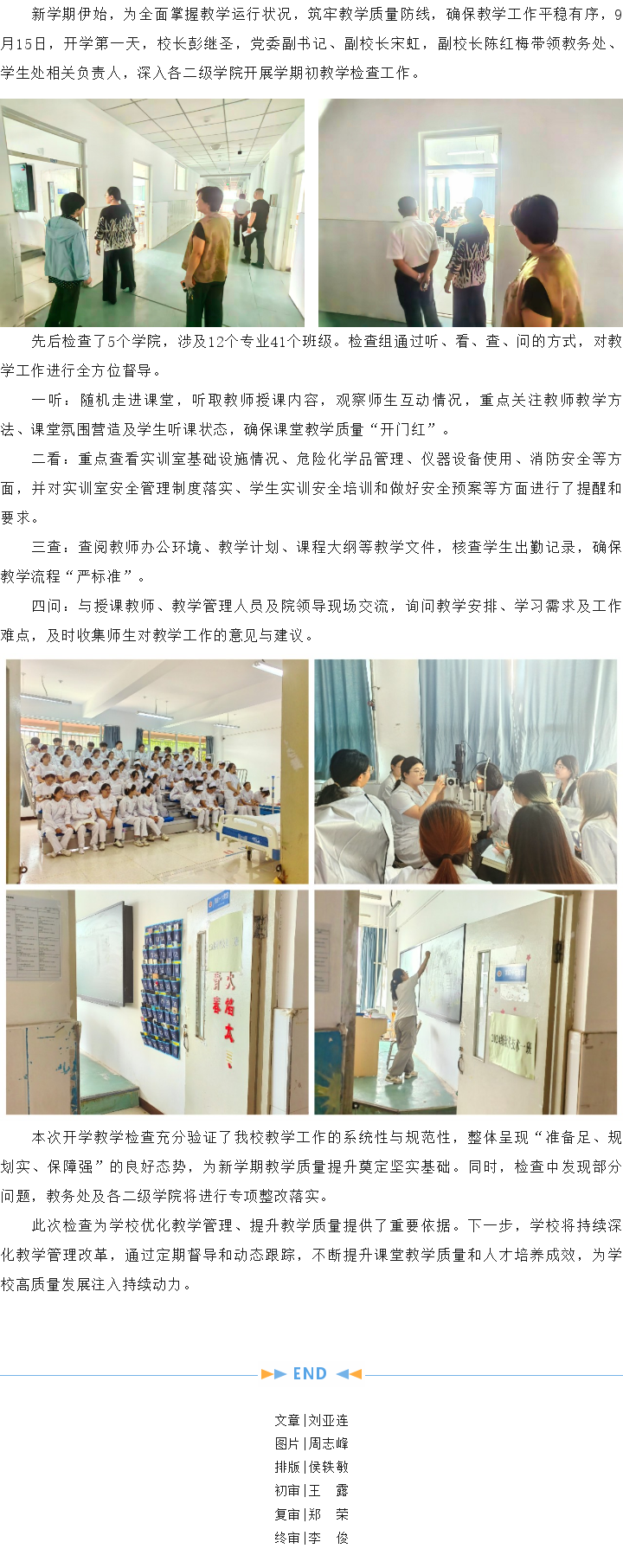 凝心聚力抓教学 精准检查促提升 ——新葡8883开展新学期开学教学检查工作