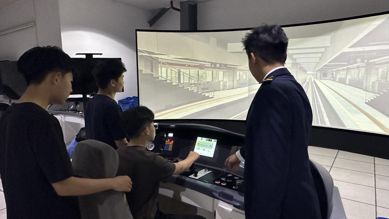 图1.太原铁路机械学校职业体验中心教师指导小学生体验地铁驾驶