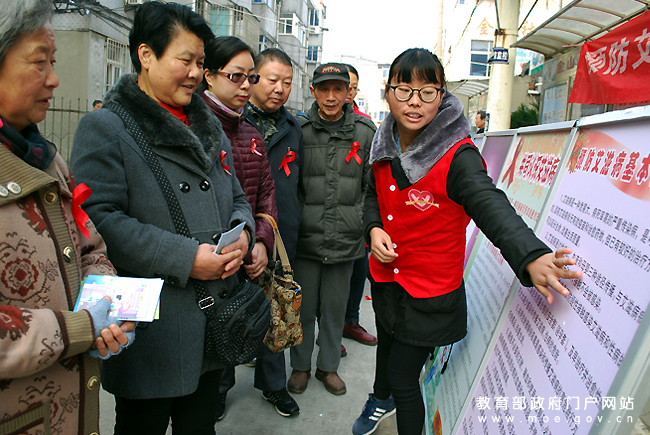 志愿者向居民宣讲艾滋病防范知识。(石玉成 张萍/摄)