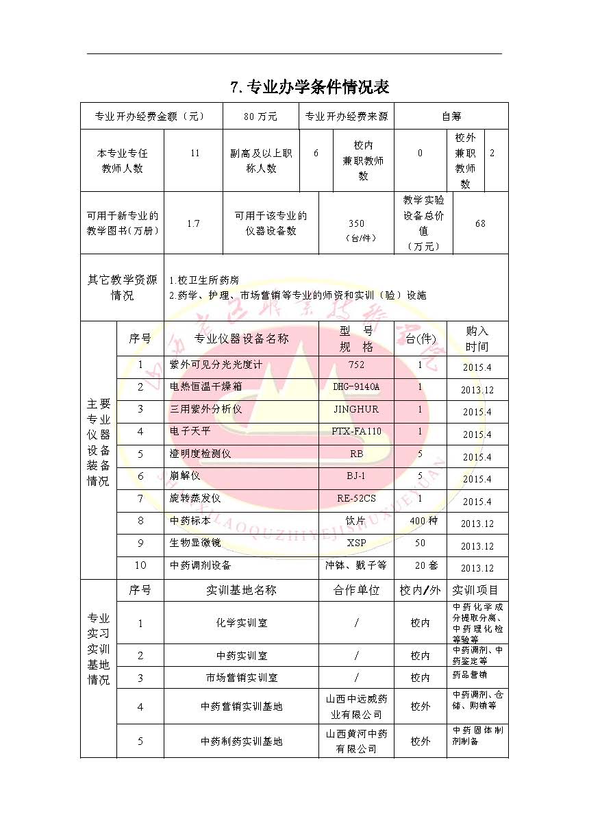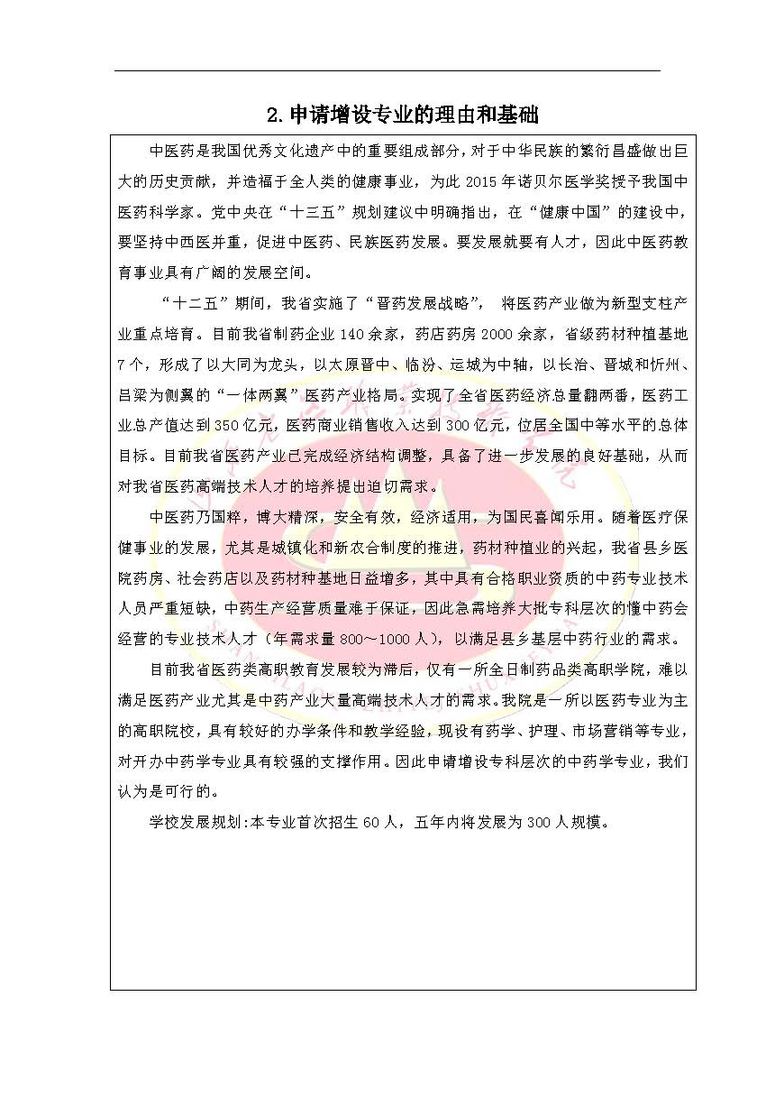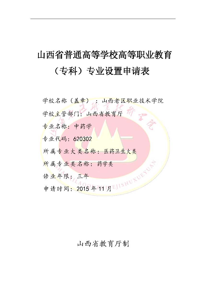 2015年新专业设置申请表(中药学)