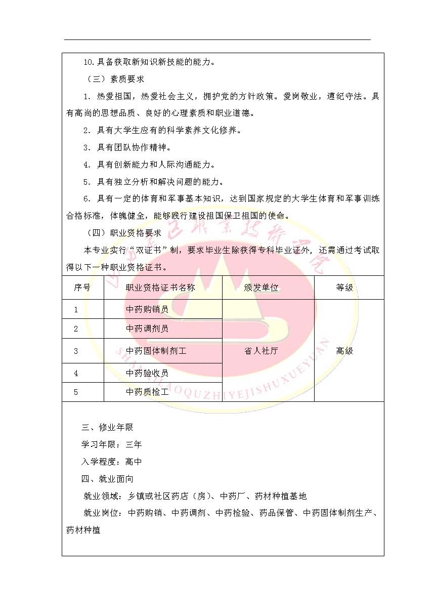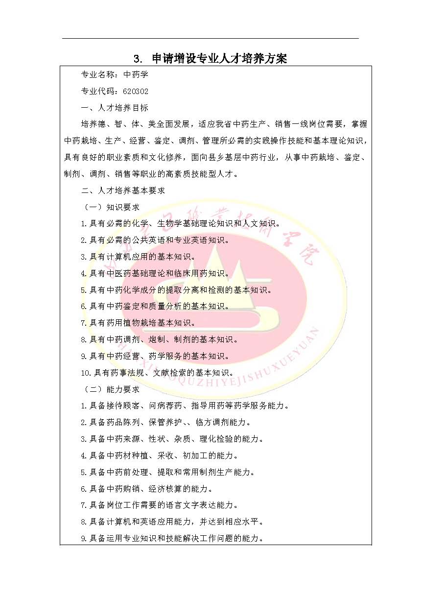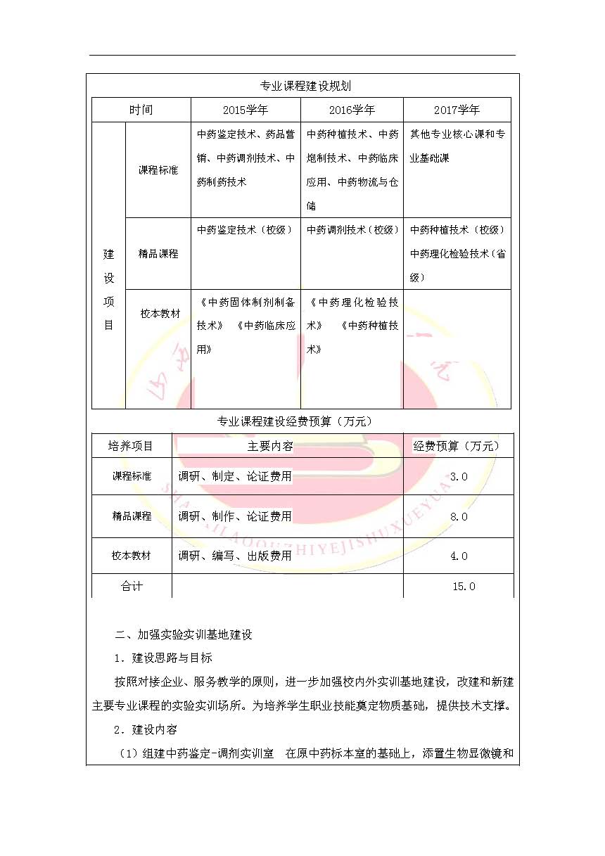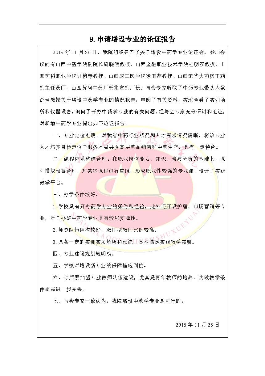 2015年新专业设置申请表(中药学)