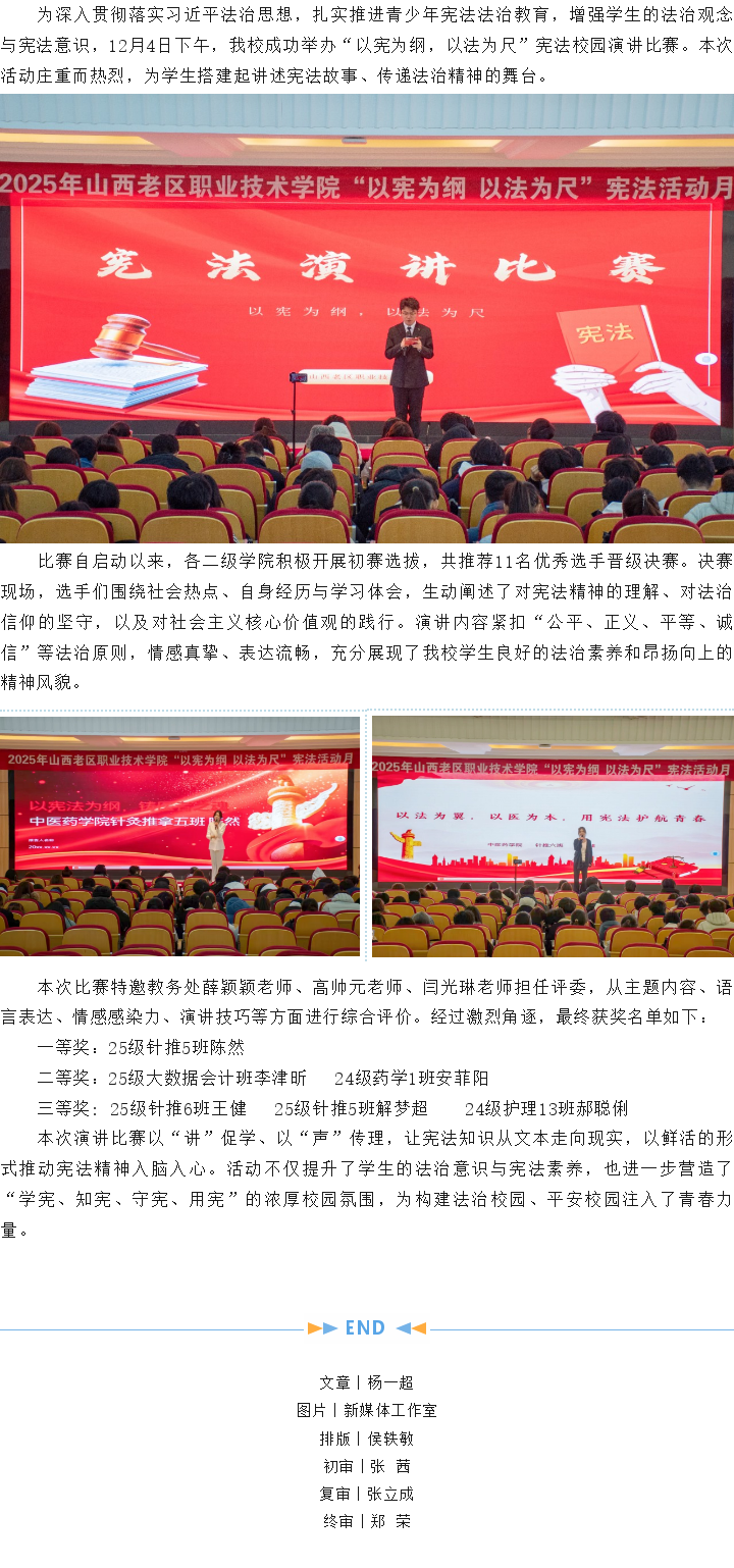 新葡8883举办“以宪为纲,以法为尺”宪法校园演讲比赛