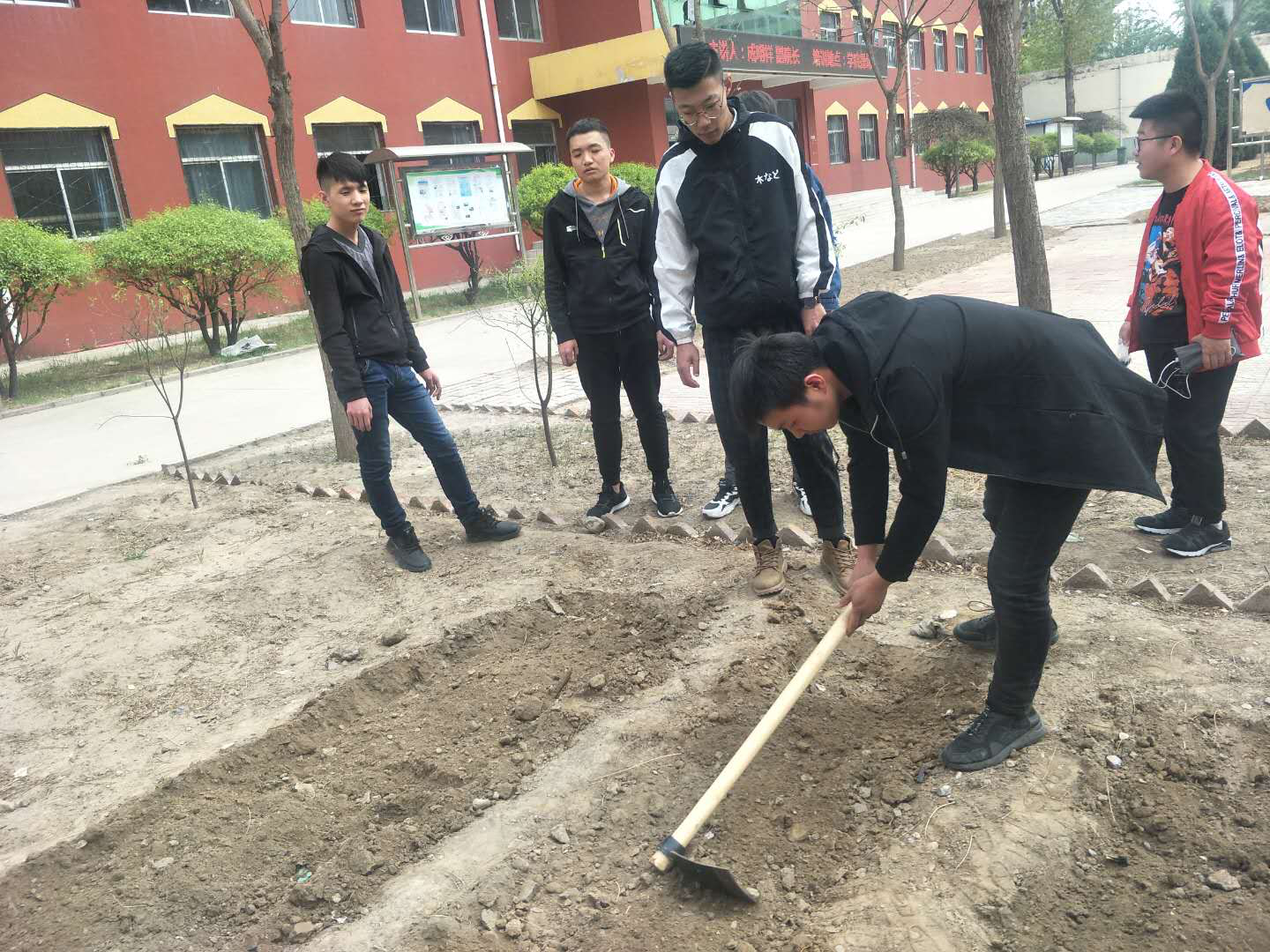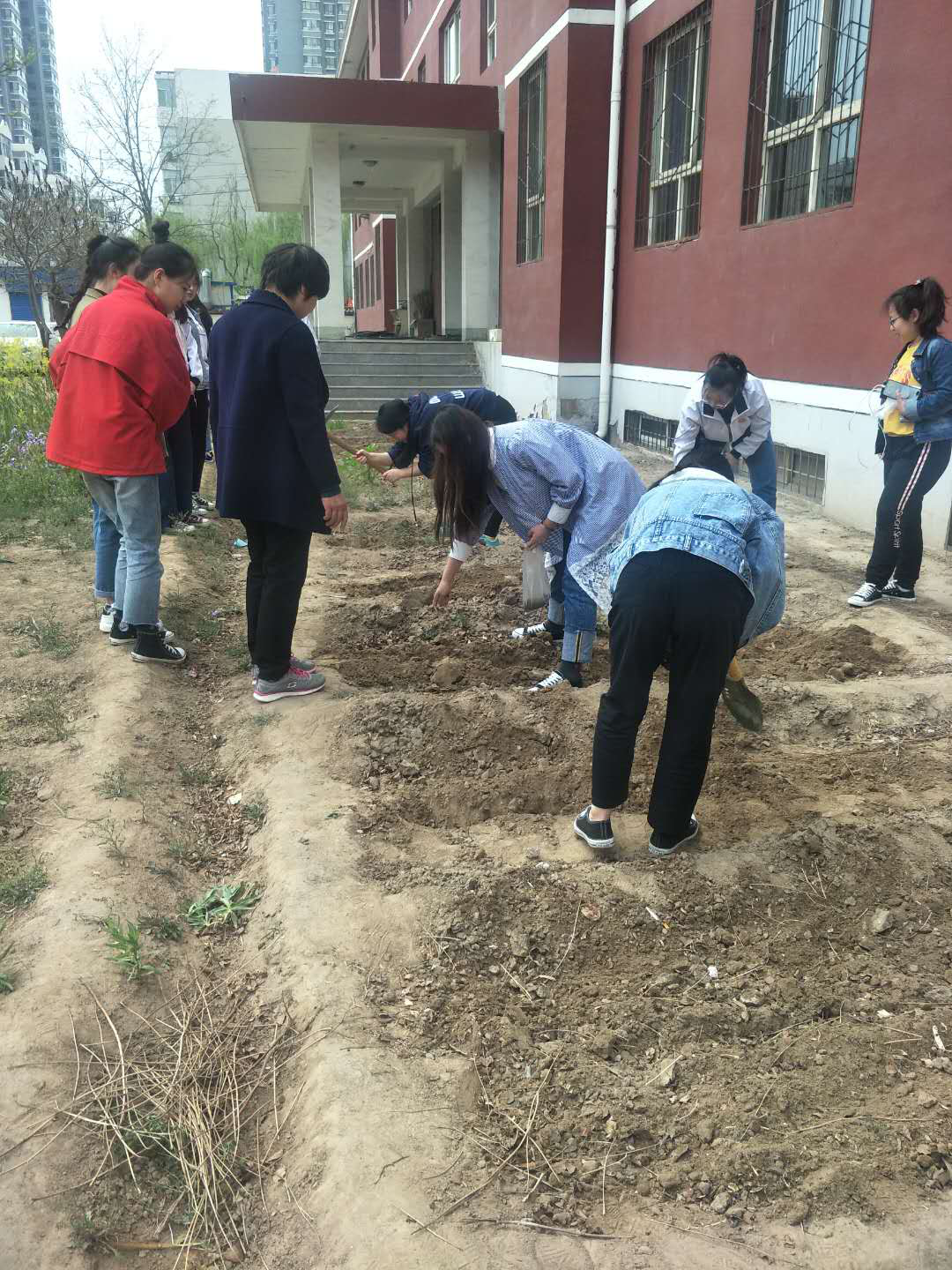 学生们听从老师安排合理选地,满足不同种子的种植要求。如根据种子大小选择适宜的覆土量。合理分组分工,完成翻土,播种,做标记等工作。