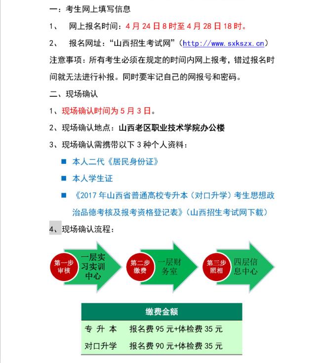 关于2017年对口升学、专升本现场确认的通知