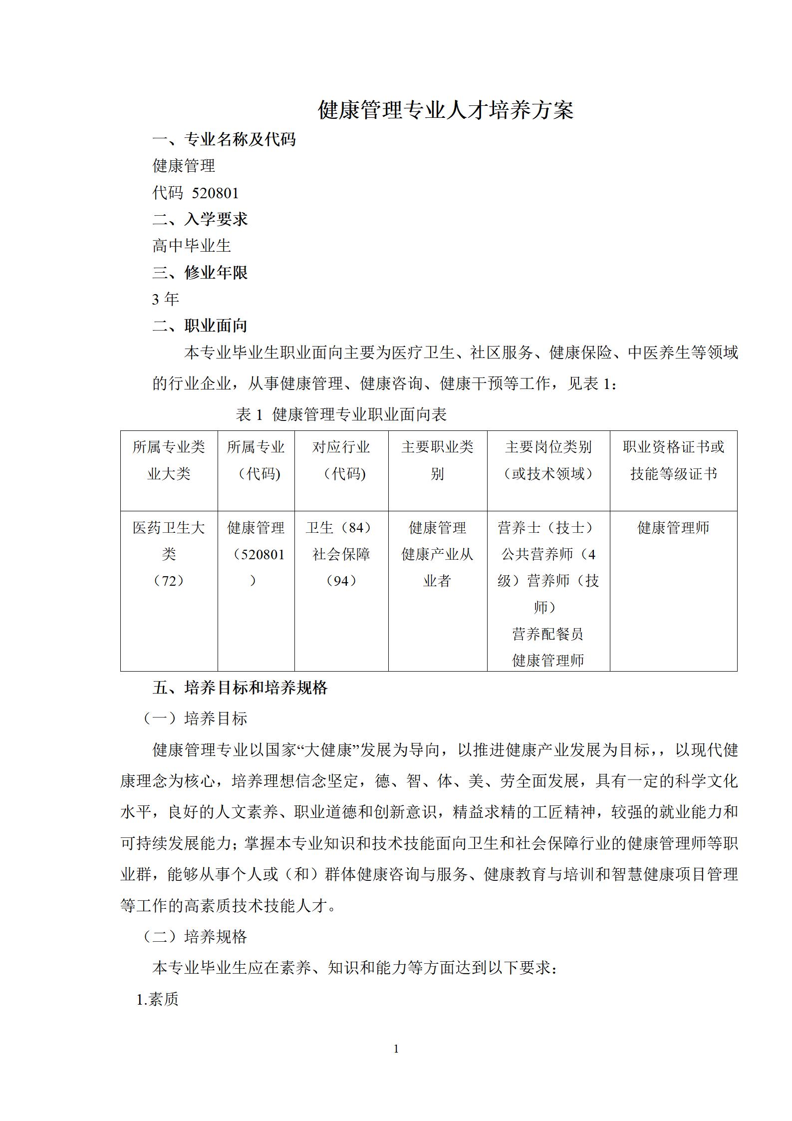 新葡8883官网AMG官网健康管理专业人才培养方案
