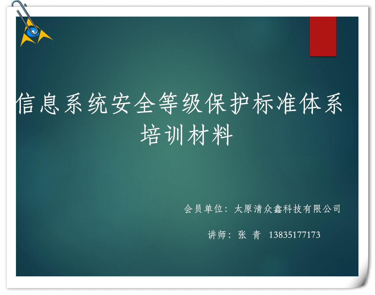 其次山西大学刘全民博士和太原清众鑫科技有限公司张青技术专家分别从技术上和理论上详细讲解了信息安全工作需要标准指导、等级保护基本要求、信息系统安全技术标准、信息系统安全等级保护备案工作流程等。