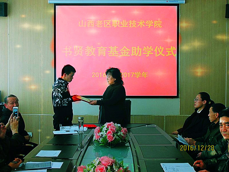 12月28日下午,学院在二楼会议室隆重举行“书贤教育基金”助学仪式,张蓉琴院长、宋虹副院长、成明祥教务长、纪委书记侯晋生以及学院中层干部、学院教育精准扶贫工作组成员和受助学生斛旭东参加会议。