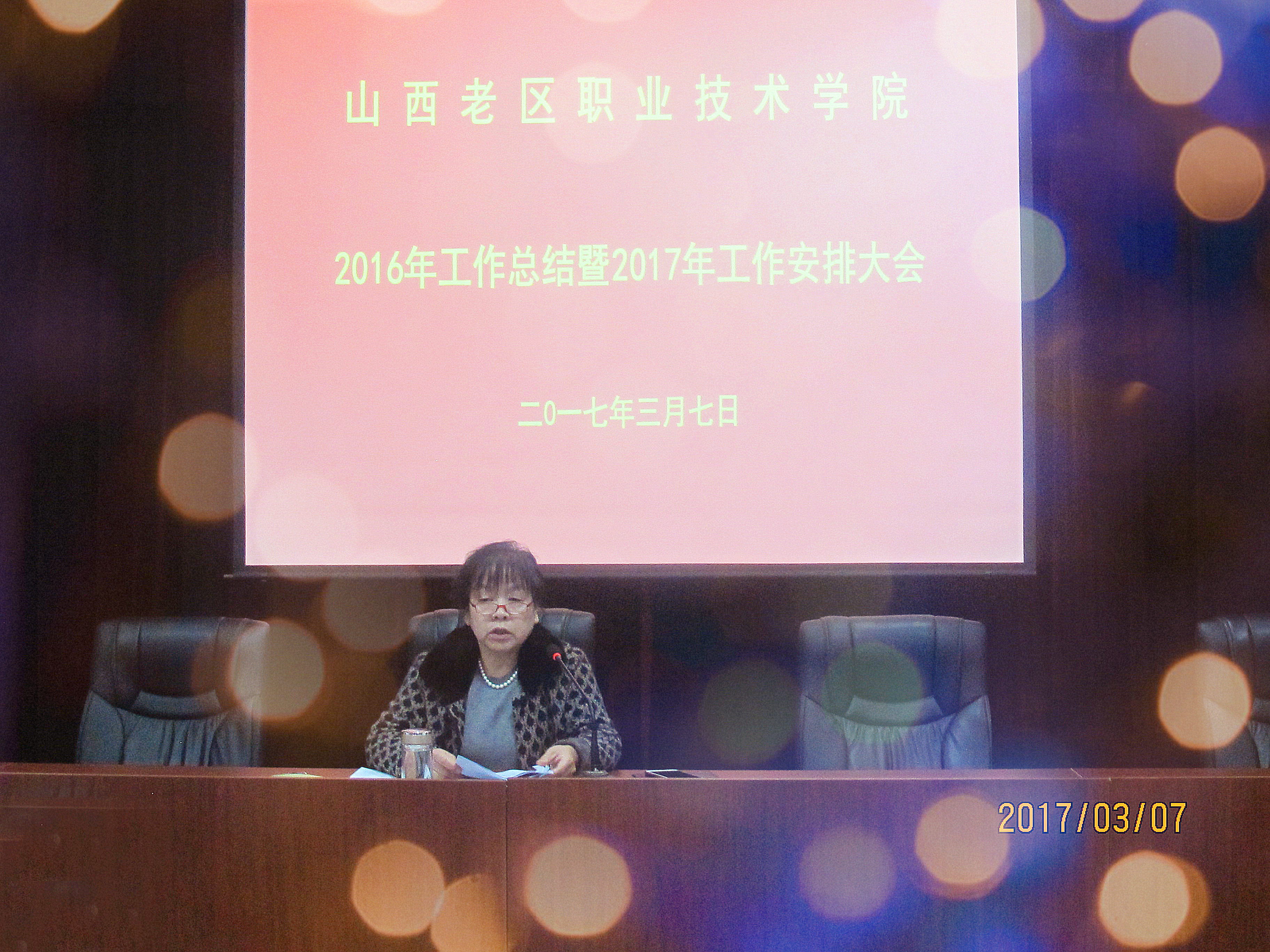 张院长对2016年度工作从八个方面进行了全面总结报告。全年工作呈现出以下几个特点:(一)围绕一个“核心”,健全领导体制,扎实推进体制机制建设,行政管理工作水平有了新提升;(二)坚持一条原则,加大投入改善办学条件,校园环境有了新变化;(三)牵住一条主线,深化改革突出教学中心工作,狠抓教育教学质量,学院整体办学实力上了新台阶;(四)坚持一个中心,加强内涵建设,人才培养质量有了新提高;(五)把握一个重点,注重学习,抓住特色,努力打造老区精神特色名片;(六)坚持一条措施,整章建制,精心安排分解任务;(七)提高认识,统一思想,以贯彻十八大精神为主旋律,党建和思想政治工作水平有了新提升;(八)夯实基础,注重内外兼修,为学院长足发展奠定坚实基础。