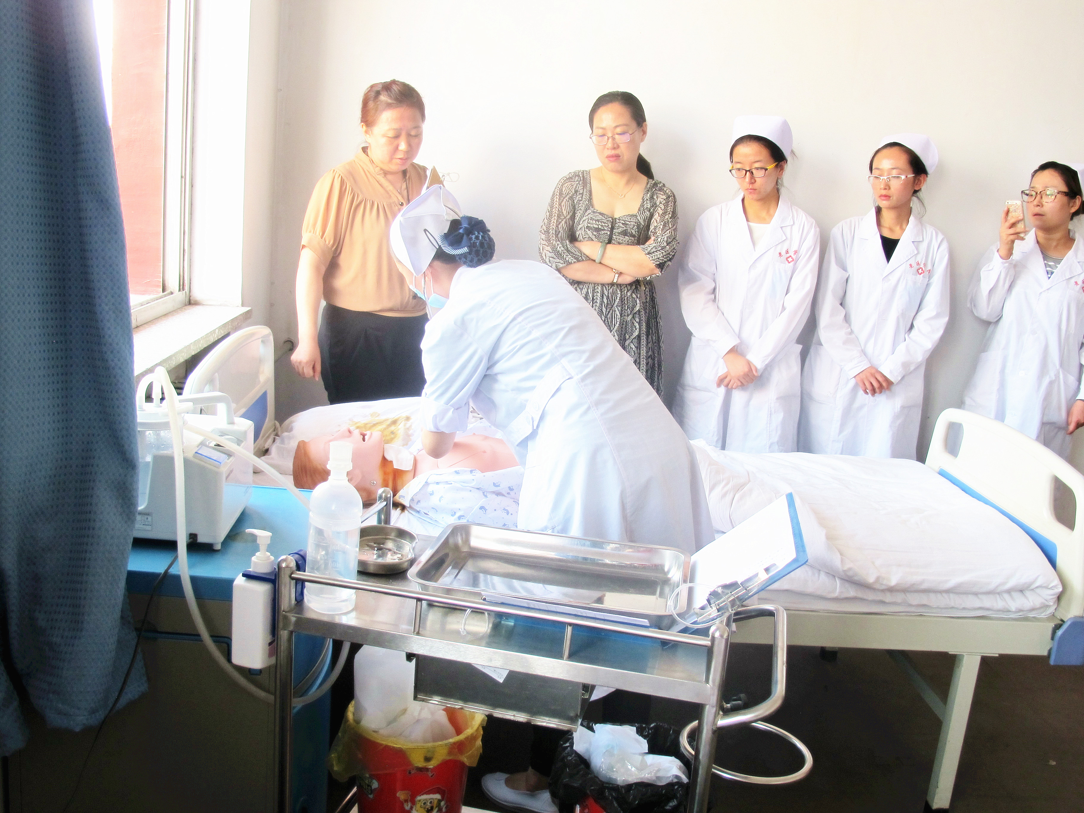 6月15 日,新葡8883官网AMG官网护理系召开护理技能大赛赛前动员会,张蓉琴院长、党委副书记宋虹副院长、纪检委书记侯晋生副院长以及监事会贾林英主任前往学院护理技能实验室观摩了参赛选手进行的模拟训练,了解了省赛的流程和其他相关内容,询问了选手的赛前准备情况。