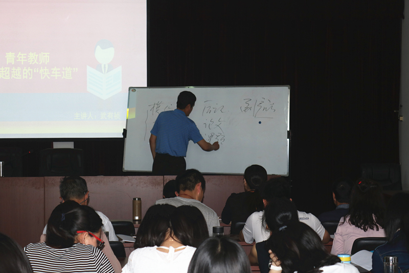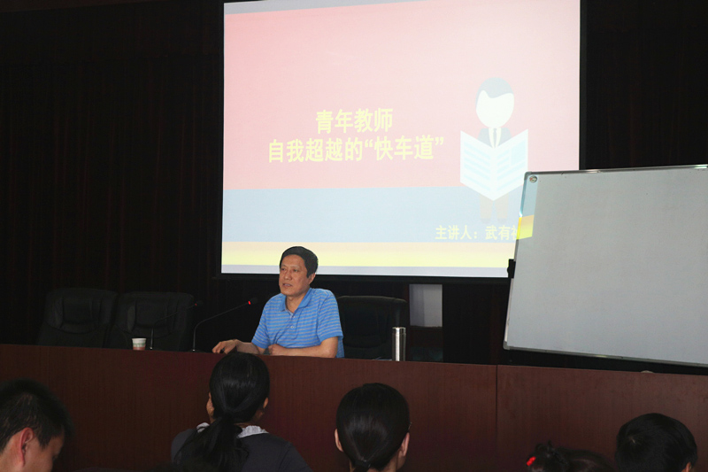 5月25日下午,我院党委书记武有祯在四楼多功能会议室作学术讲座,主题为“青年教师自我超越的快车道”。院长辛爱青与我院全体教职工参加了此次讲座。