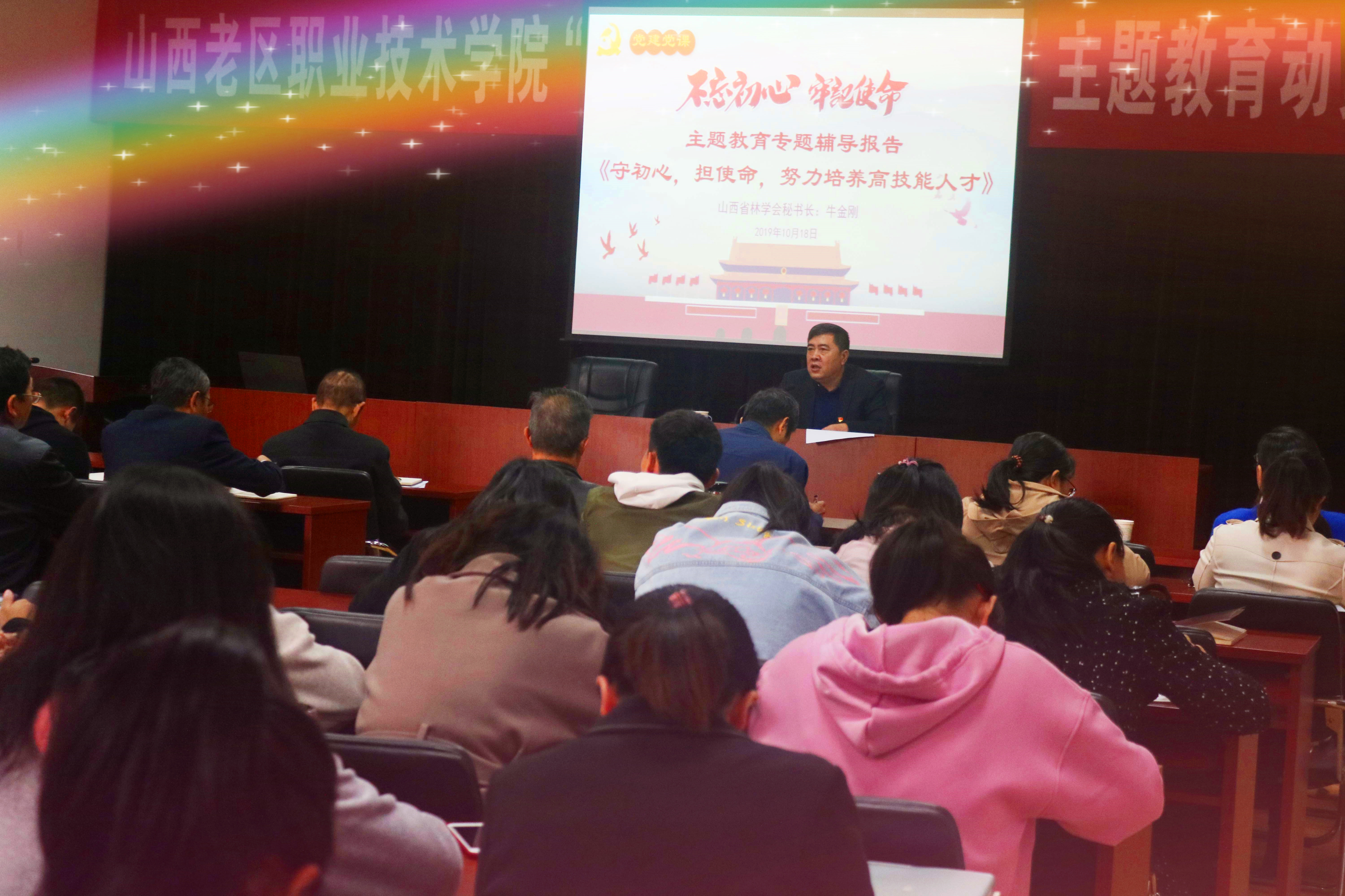 10月18日下午,我院邀请山西省林学会秘书长牛金刚作了“不忘初心 牢记使命”主题教育专题讲座。讲座由我院党委书记武有祯主持,全院教职工党员参加。