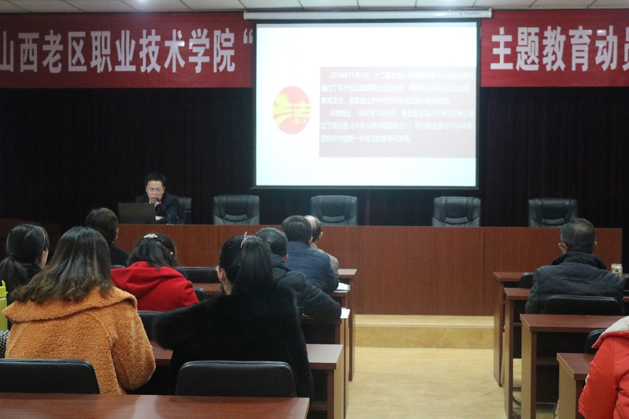 “设立国家宪法日,不仅是增加一个纪念日,更要使这一天成为全民的宪法“教育日、普及日、深化日”,形成举国上下尊重宪法、宪法至上、用宪法维护人民权益的社会氛围……”这是老区职院宪法日的讲座现场。
