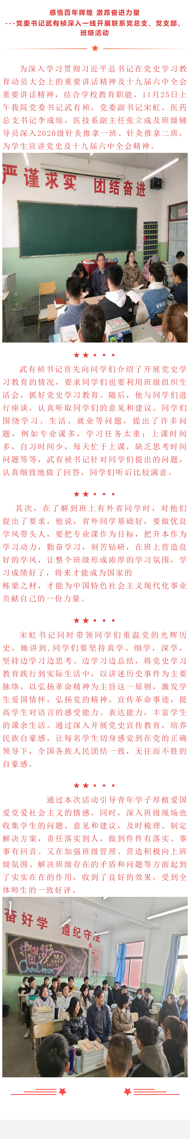 党委书记武有祯深入一线开展联系党总支、党支部、班级活动
