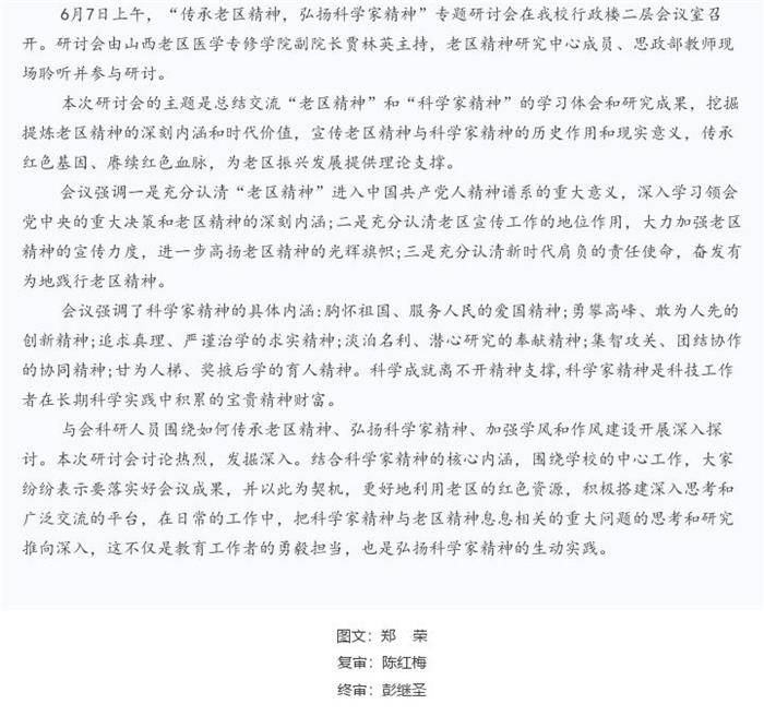 新葡8883举办“传承老区精神,弘扬科学家精神”研讨会