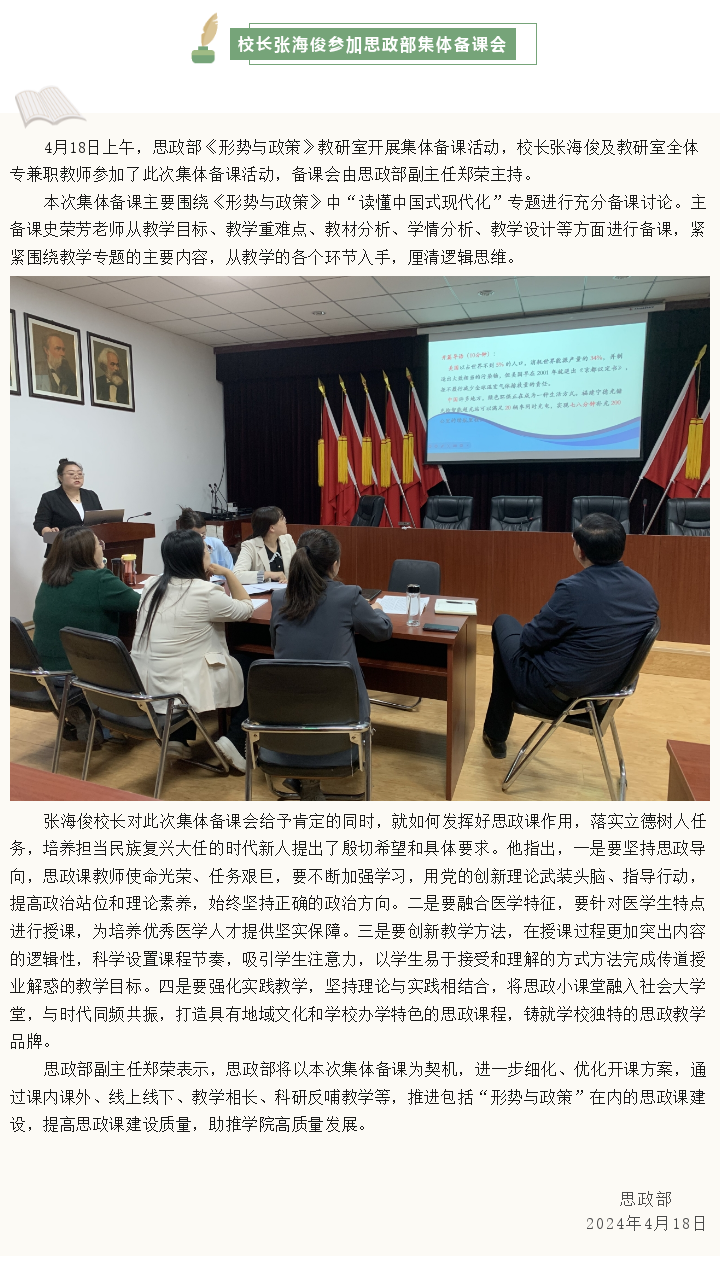 校长张海俊参加思政部集体备课会