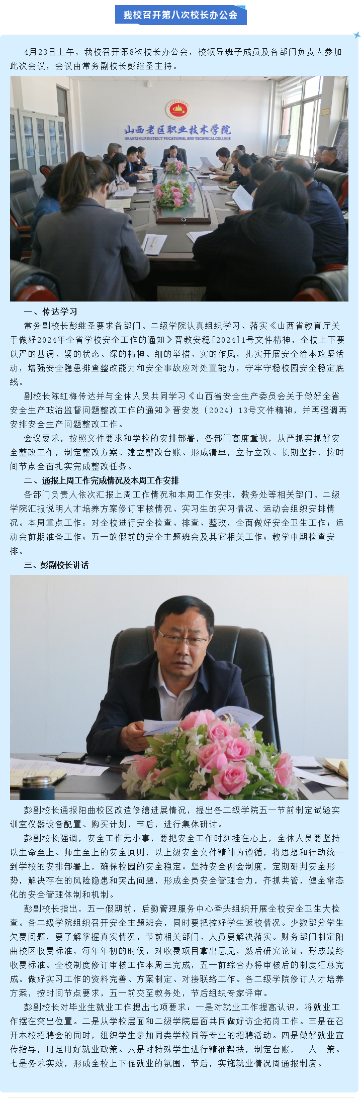 新葡8883召开2024年第八次校长办公会议