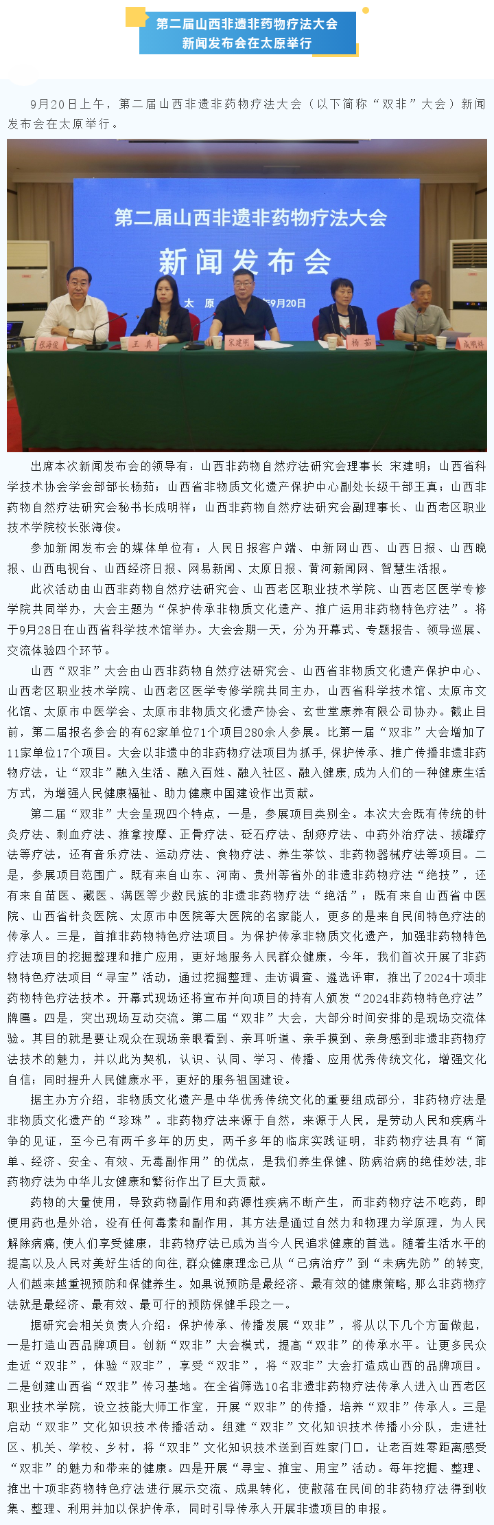 第二届山西非遗非药物疗法大会新闻发布会在太原举行