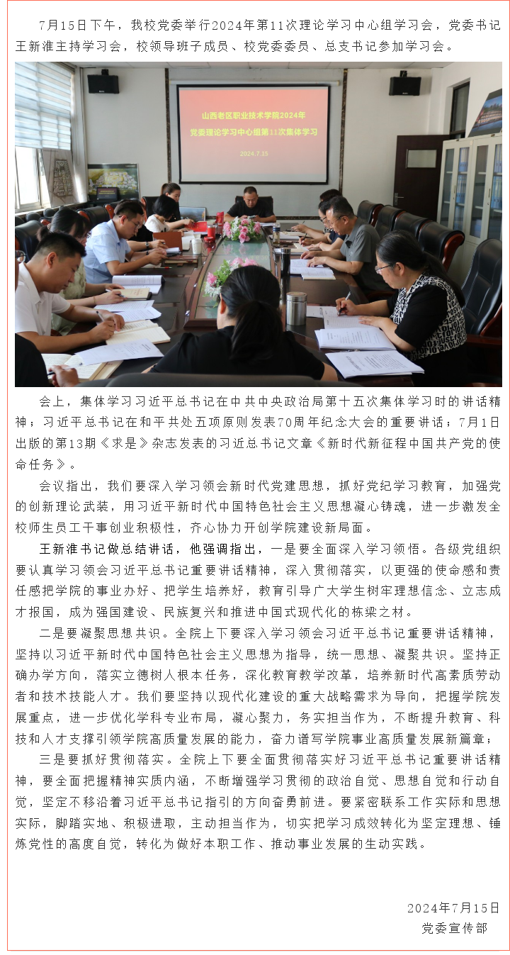 校党委举行2024年第11次中心组学习会