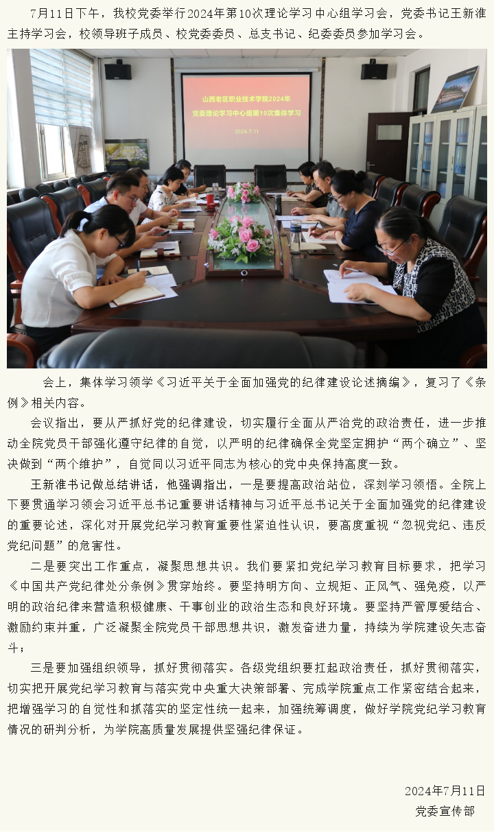 校党委举行2024年第10次中心组学习会