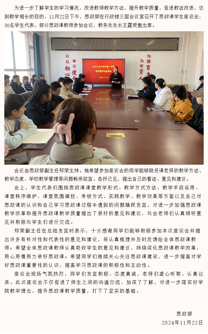 倾听学声 共谋发展——思政部召开思政课学生座谈会