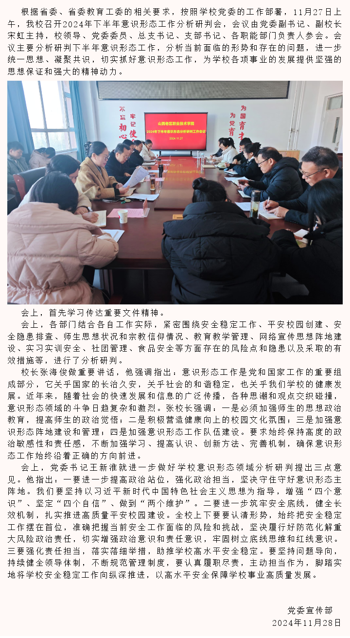 新葡8883召开2024年下半年意识形态分析研判工作会议