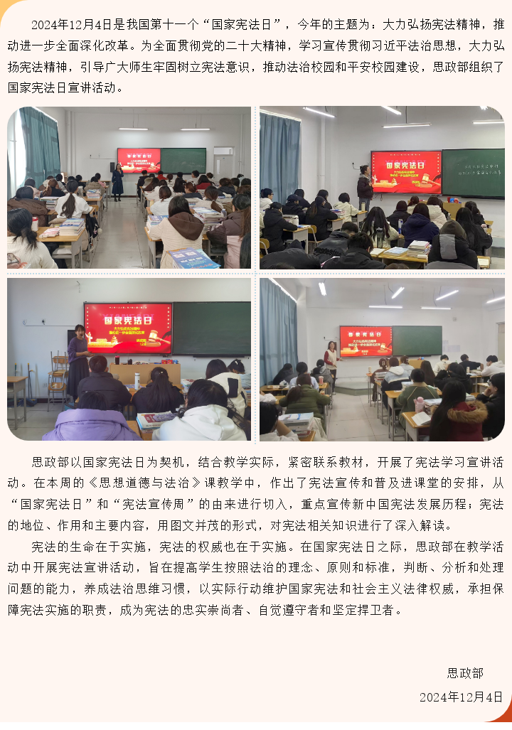 普及宪法知识 弘扬宪法精神——思政部宪法宣传进课堂