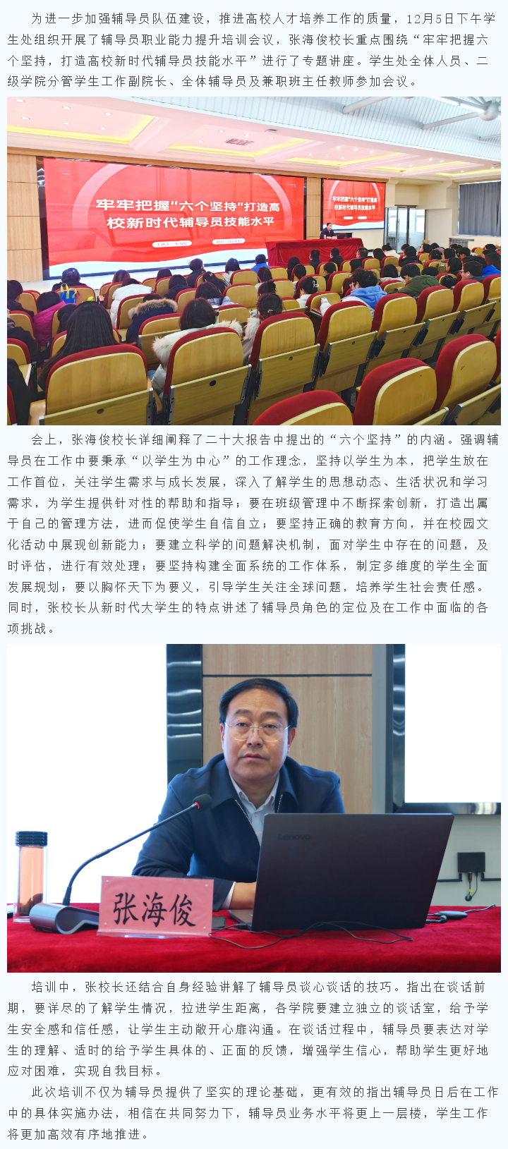 新葡8883组织开展辅导员职业能力提升培训会议——牢牢把握“六个坚持”,打造高校新时代辅导员技能水平