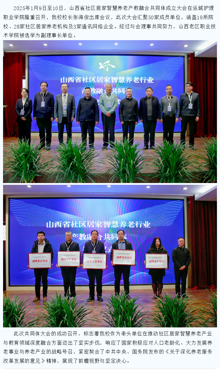 新葡8883参加山西省社区居家智慧养老行业产教融合共同体成立大会并被选举为副理事长单位