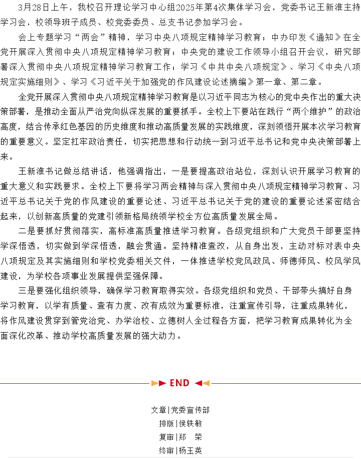 新葡8883召开理论学习中心组2025年第4次集体学习会