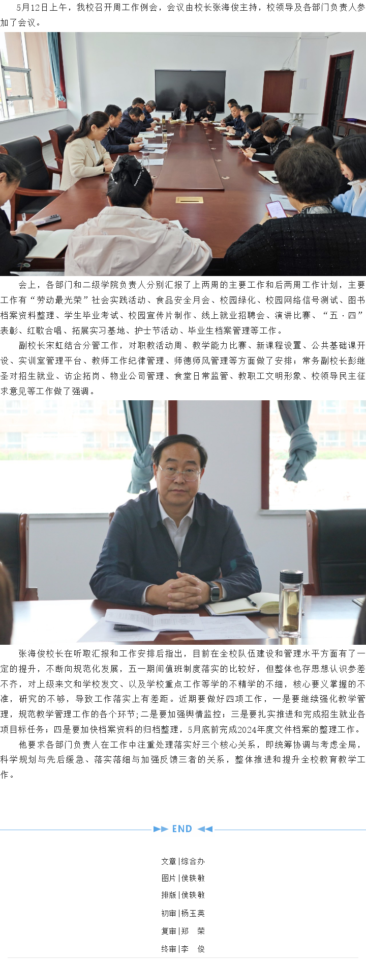 新葡8883召开周工作例会