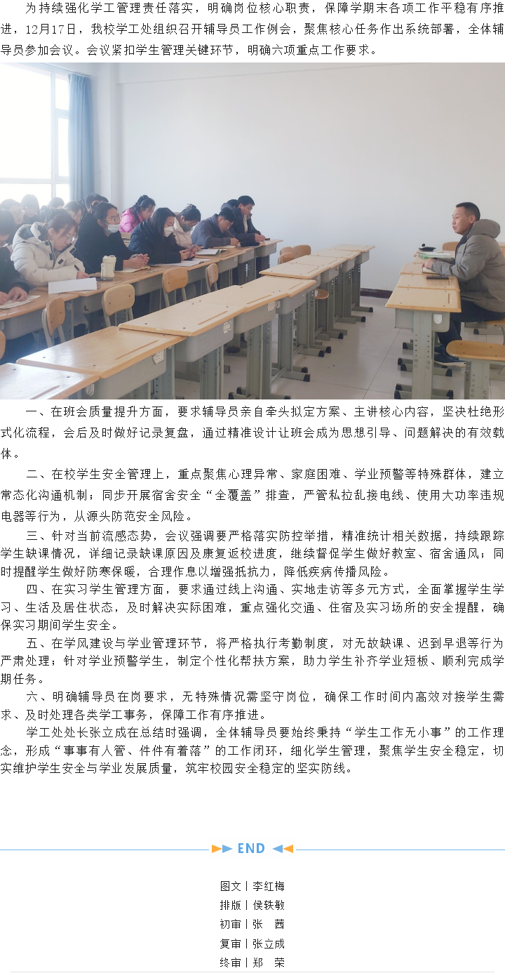 压实学工责任 筑牢校园防线——新葡8883学工处召开辅导员工作例会
