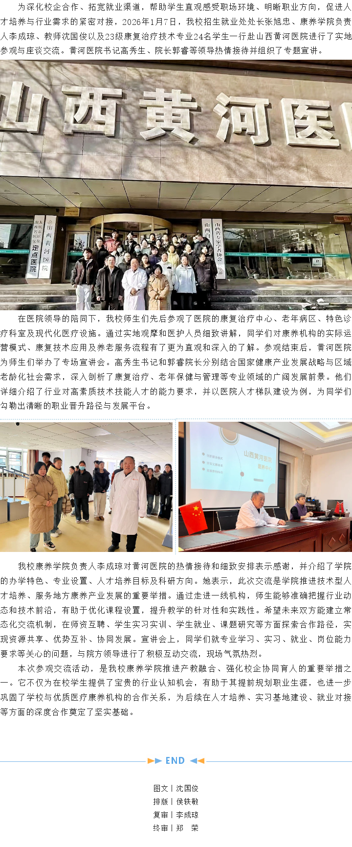 深化校企合作 共育康养人才——新葡8883康养学院师生代表赴山西黄河医院参观交流