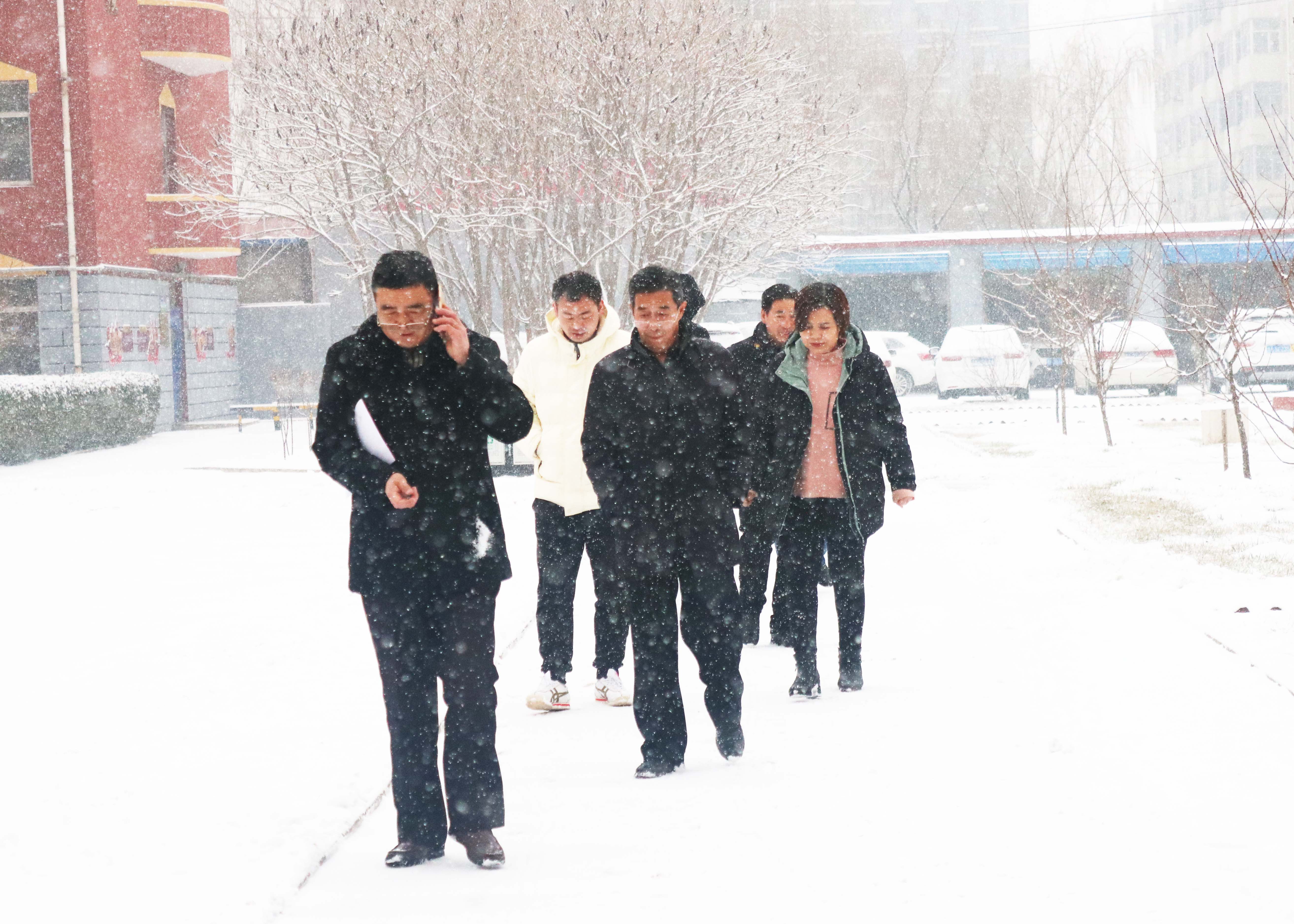 1月5日上午,纷纷扬扬的雪花从天而降,不一会儿,就将整个校园装扮得银装素裹,煞是好看。在这个喜降瑞雪的时刻,为了做好寒假、春节期间校园安全工作,切实维护好全院师生员工的人身和财产安全,陈红梅副院长、侯晋生副院长带领院办、保卫处、后勤处、学生处、实验实训中心、网络信息中心等职能部门负责人对校园安全情况进行检查。