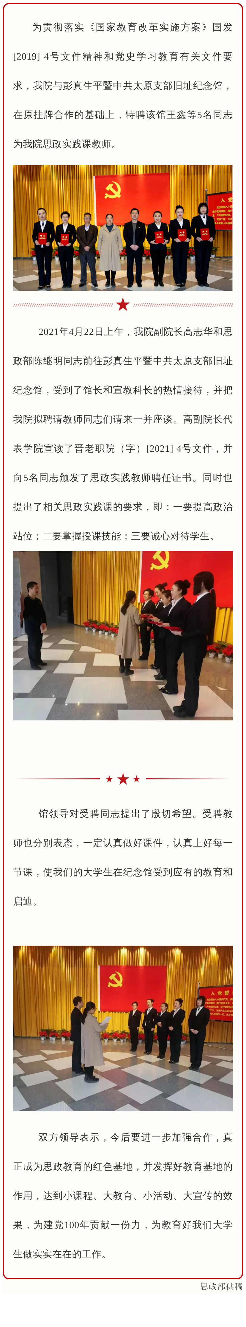 我院特聘彭真纪念馆5名同志为思政实践课教师