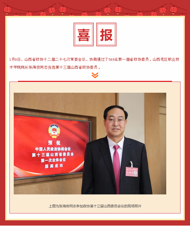 喜报|新葡8883官网AMG官网院长张海俊同志当选第十三届山西政协委员