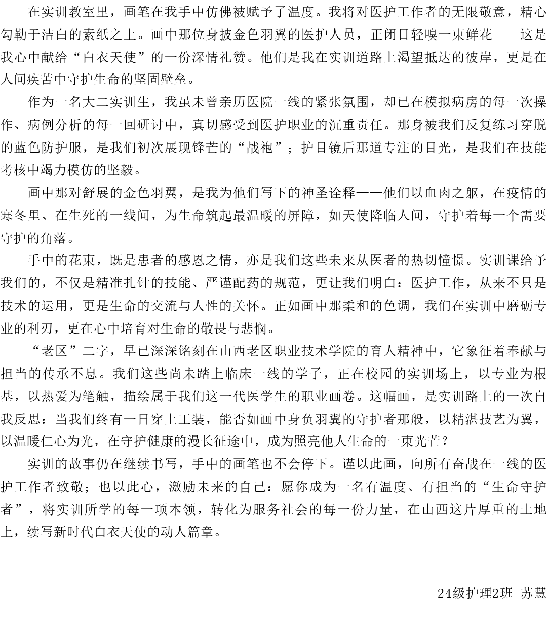 以笔为刃 致敬白衣“翼”者 ————实训绘心