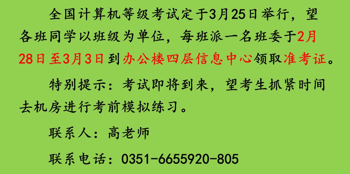 关于领取2017年3月全国计算机等级考试准考证的通知