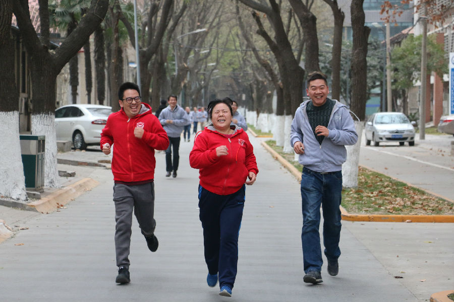 致辞结束,随着单智伟院长的一声令下,长跑活动正式开始,比赛以新材料大楼为起点和终点,教职工们争先恐后,不畏寒冷,脸上洋溢着开心的笑容,努力地向着终点奔跑。经过激烈的角逐,男子组比赛中雒晓涛老师率先冲过终点,获得冠军,李磊老师紧随其后,获得亚军,李波老师获得季军。女子组刘晓婷老师拔得头筹,李杰老师和黄平老师分获亚军和季军。
