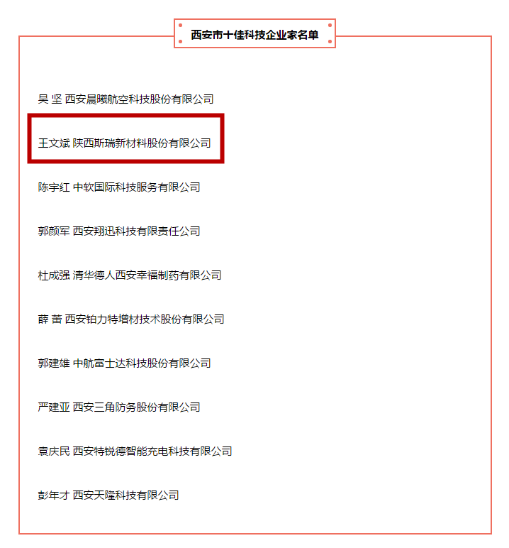 恭喜新葡的京官网王文斌校友入选西安市十佳科技企业家榜单。