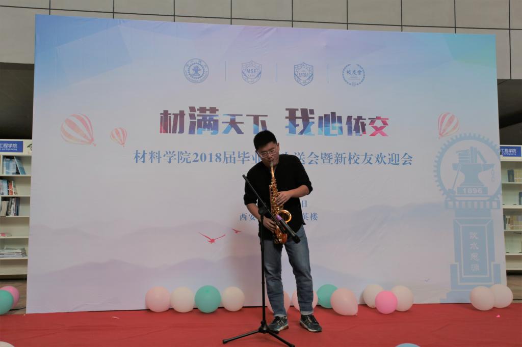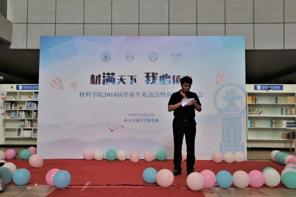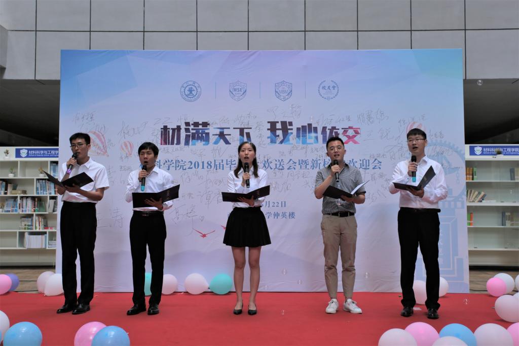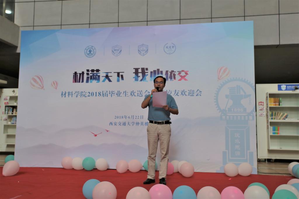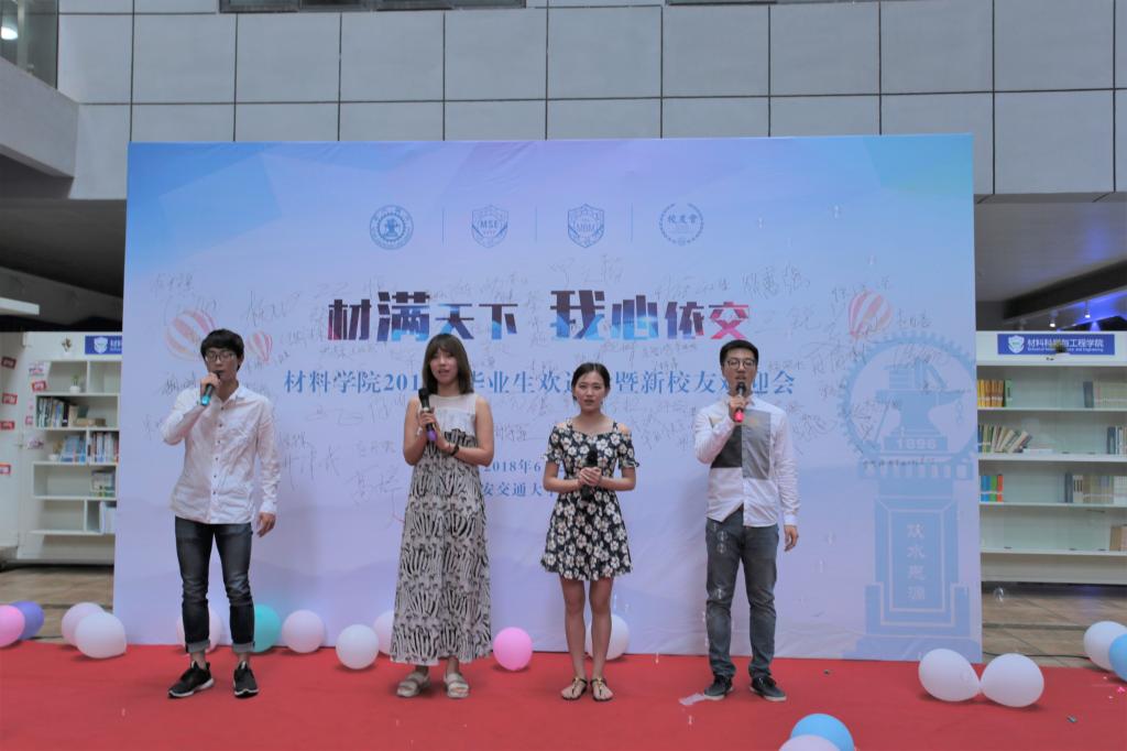 伴随着欢快明朗的音乐,毕业生欢送会拉开帷幕。潘希德书记对2018届毕业生送上由衷的祝福。他希望大家无论身处何方,无论位居何处,永远都是交大人、都是材料人。在未来的生活中,要脚踏实地,从小事做起,不惧挫折和失败,满怀感恩,勇担时代责任,开启新篇章。