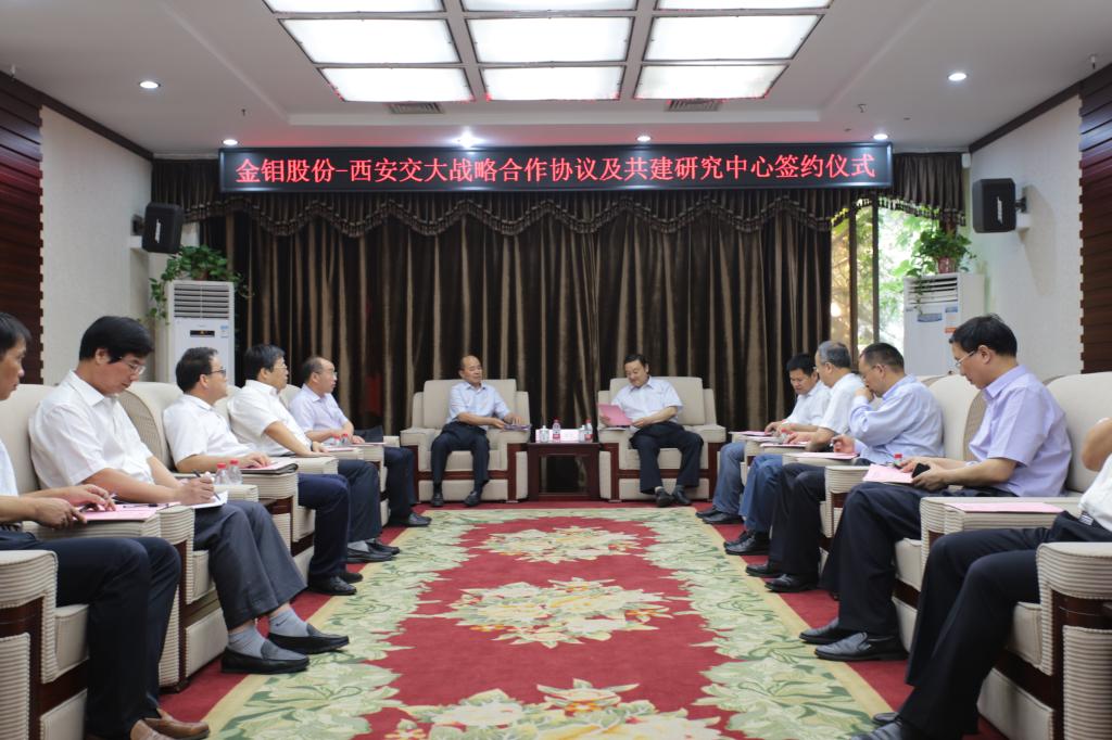 程方方董事长对我校办学、科研水平和人才培养等方面给予充分肯定,并从历史沿革、业务变迁、公司定位、未来发展规划等方面阐述了金钼集团和金钼股份。希望能够借助西安交大的科研、人才和培训优势,重点解决钼产业链中的现实和发展问题,取得丰硕成果,实现互助共赢。