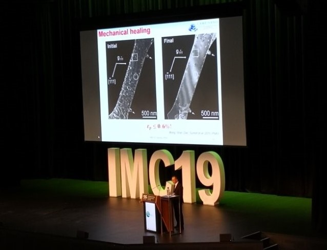9月12日上午9点,在悉尼国际会议中心报告大厅,单智伟教授以“Mechanical Testing Laboratory Inside TEM” 为题向来自世界各地的2000余名与会代表做了报告。在简述了透射电子显微镜力学测试技术发展的历史之后,单智伟教授首先概括介绍了10多年来他主导和参与的新型多功能原位电镜变形技术的演化和发展,即从简单的纳米压入发展成为集拉伸,压缩,弯曲等在内的透射电子显微镜多功能多场耦合力学测试实验室;之后,单智伟教授重点介绍了上述技术的几个典型应用案例,以及他们研究团队新近发明的世界先进的原位加热系统的原理及其在氢脆和氢致界面损伤机理研究中的应用;最后,单智伟教授通过最新的研究成果令人信服的阐明:基于原位观测的试验现象,不仅能揭示材料的物化演化机理,而且能够进一步地指导实践,如发明出新的材料焊接技术和制备出具有优异性能的新材料。